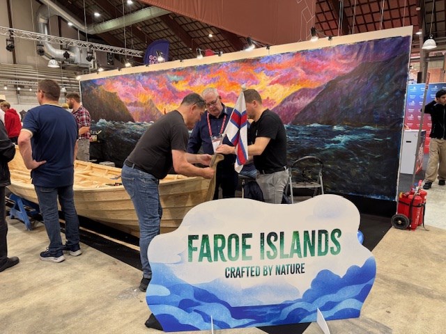 Í básinum stóð føroyskur bátur, sum John Høgnesen hevði smíðað til høvið. Og bakgrundina gjørdi Livar Nysted, sum málaði ein stóran málning av einum 10-mannafari.