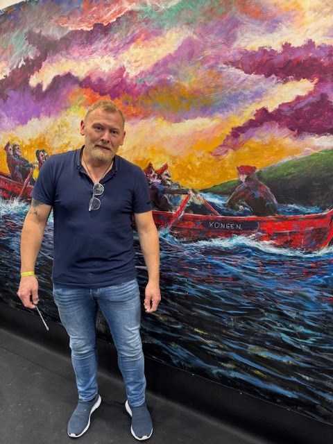 Í básinum stóð føroyskur bátur, sum John Høgnesen hevði smíðað til høvið. Og bakgrundina gjørdi Livar Nysted, sum málaði ein stóran málning av einum 10-mannafari.