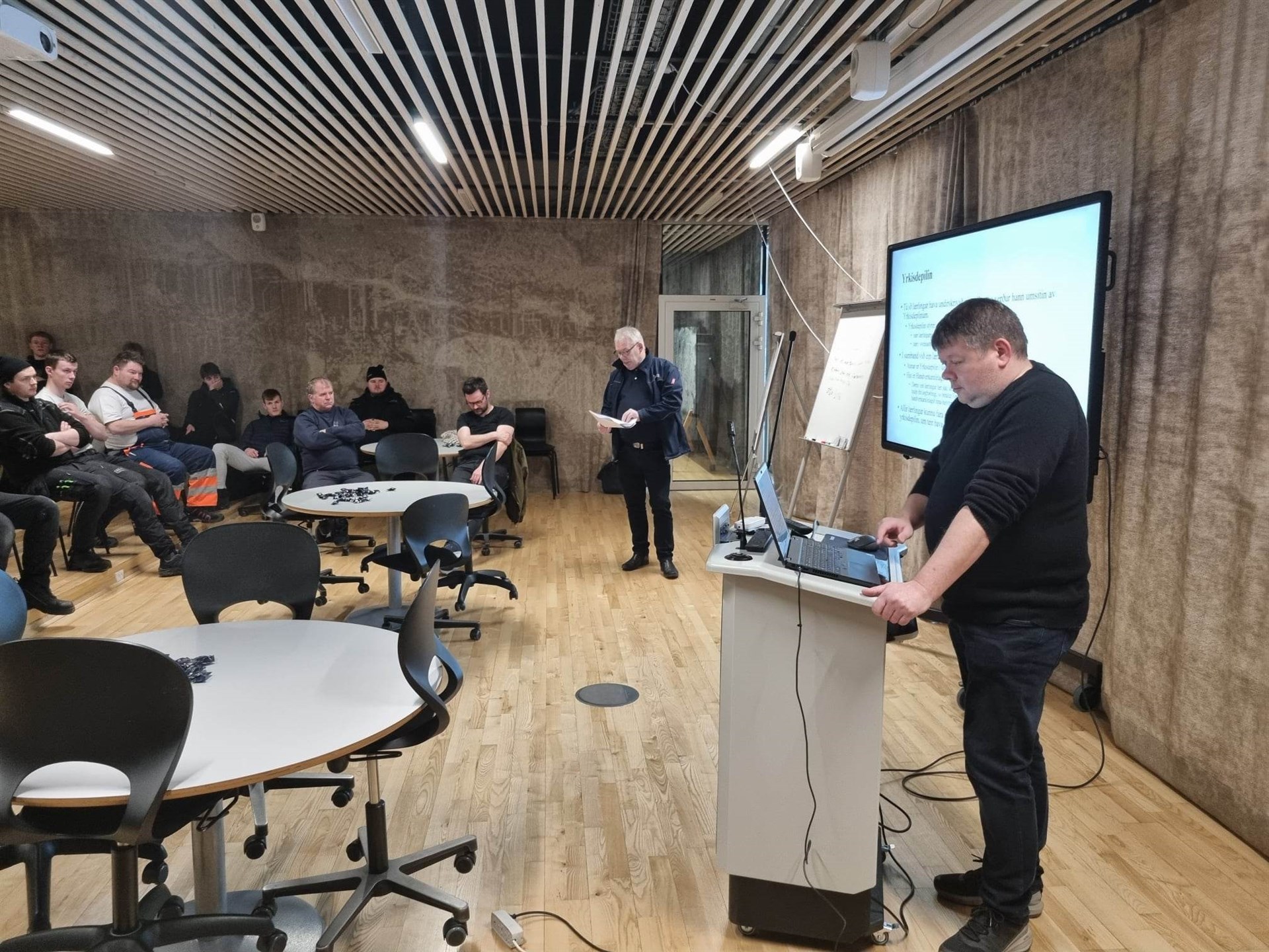 Suni hevði framløgu um Føroya Handverkarafelag, um sáttmálarnar hjá lærlingum, limaskap, lívstryggingar og eftirløn.